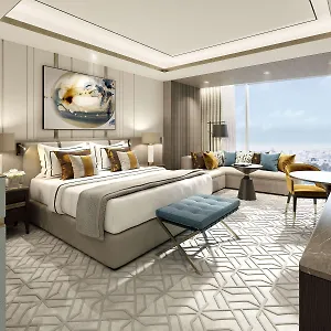 Some of the rooms at the Waldorf overlookg Arabian Gulf and feature a sitting area and a kitchen along with free Wi-Fi and a flat-screen cable-TV for a more enjoyable stay. Aside from that, panoramic views of the gulf are featured.